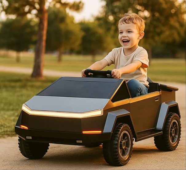 Carrinho Infantil Eletrico Futurista Estilo Tesla PrataGrande Resistente 12v C Bateria Recarregavel